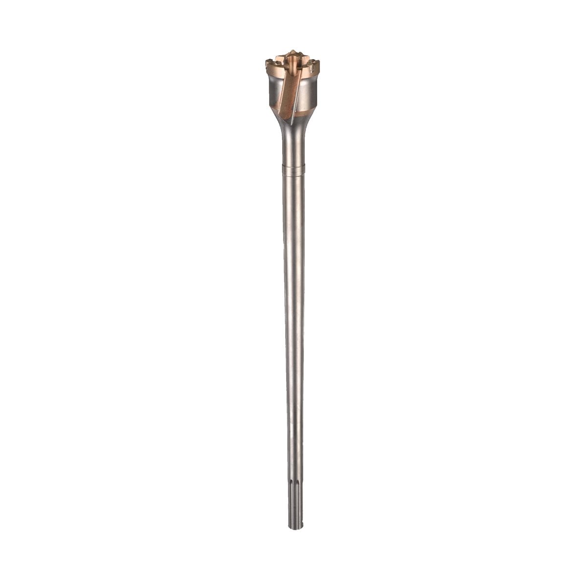 Pevný ocelový vrták z jednoho kusu oceli s prémiovým tříbřitým centrovacím vrtákem. Velká hlava se 3 drážkami pro odstraňování prachu a zkosením výztuže zabraňujícím poškození hrotu při nárazu na kovovou výztuhu.